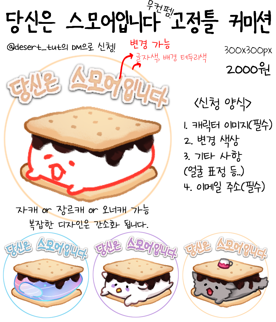 마시멜로로 만들고.. 스모어로 만들어버리는 고정틀 커미션입니다.