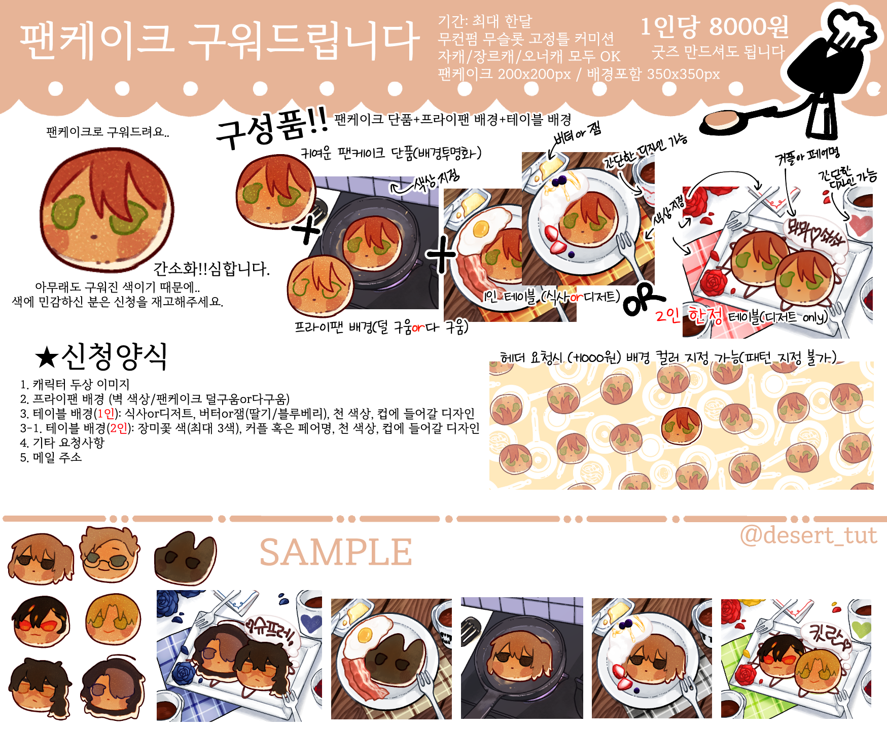 팬케이크 비공개 요청 받지 않습니다. (프라이팬/테이블은 기본으로 비공개합니다)